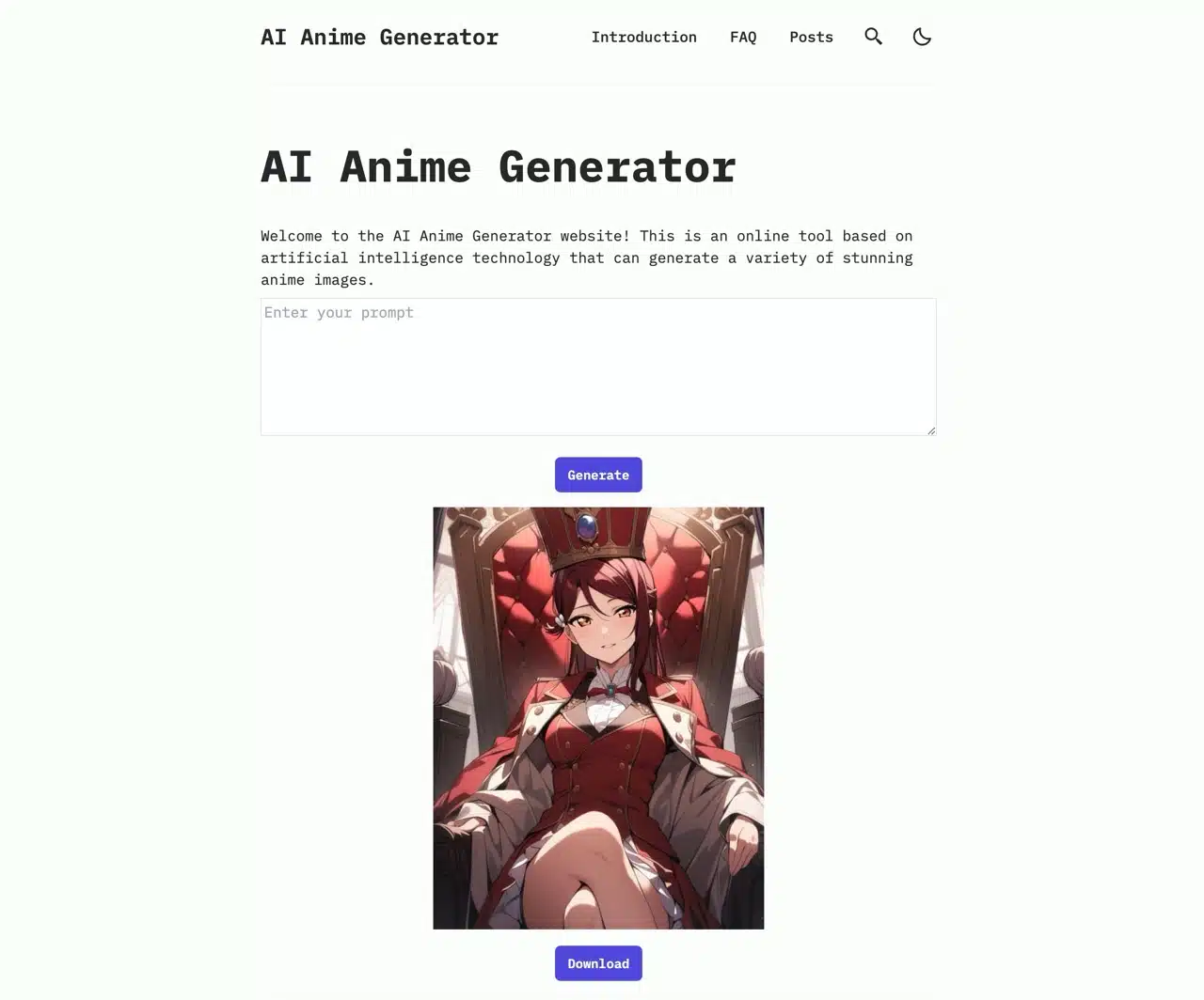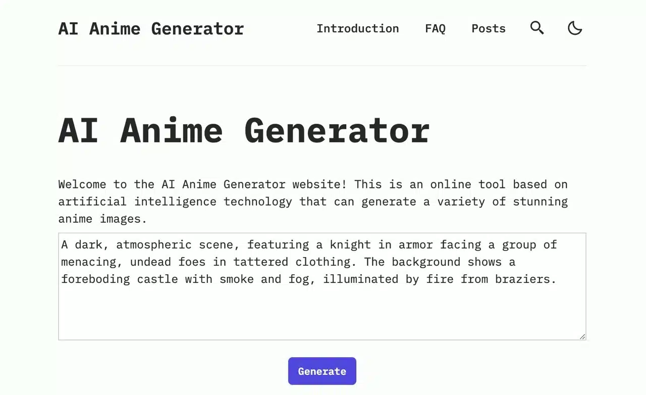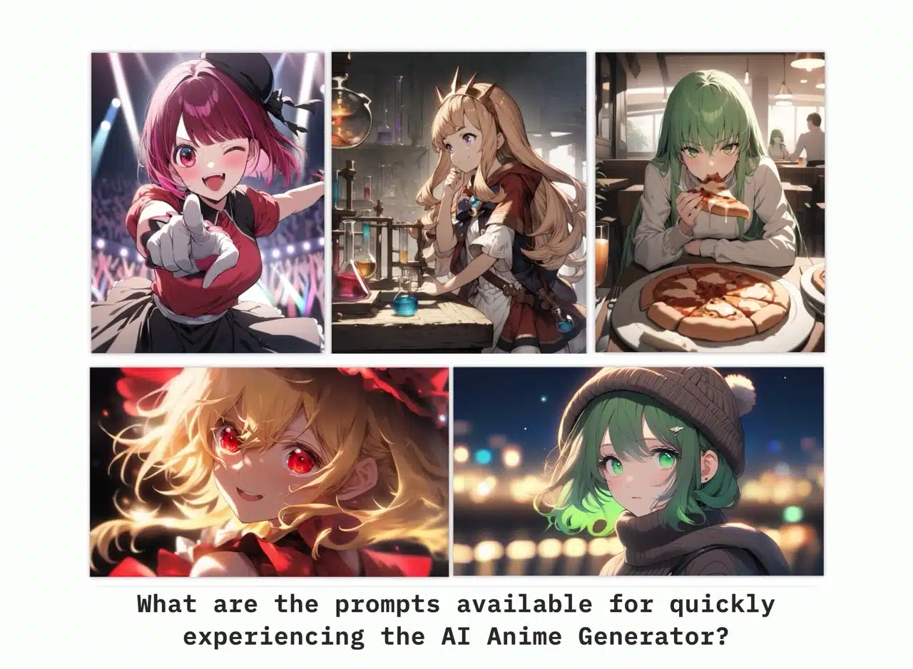 AI Anime Generator is an online tool powered by artificial intelligence. Simply enter your prompt, click “Generate,” and it will produce anime-style images in seconds.