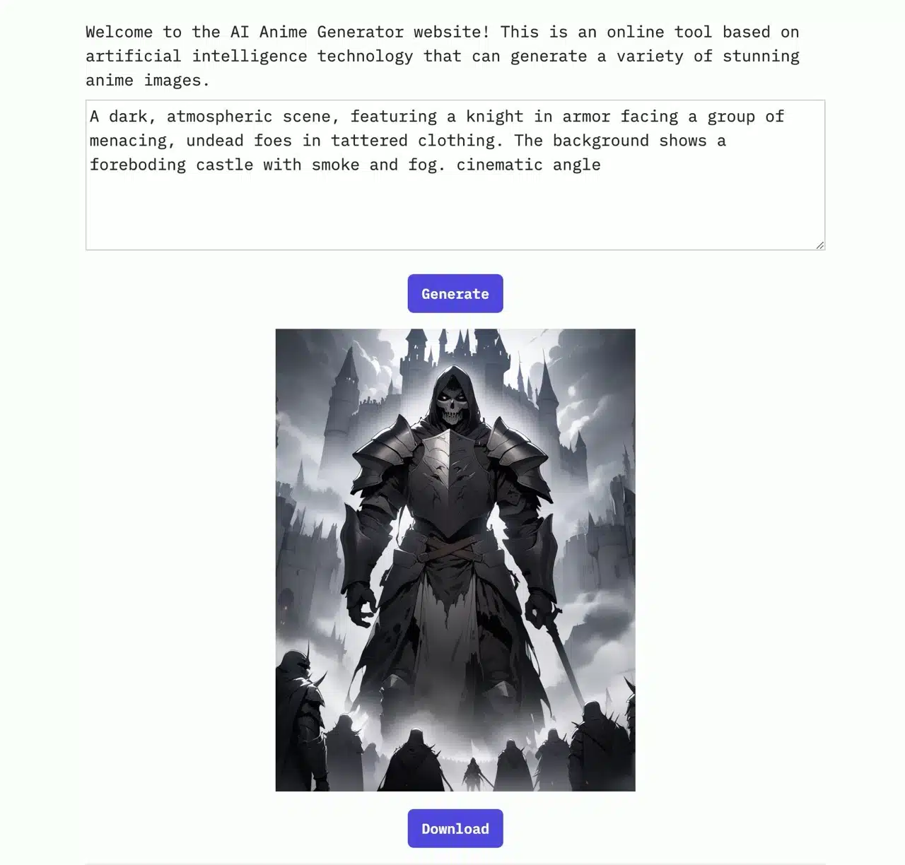 The generated image will appear below. Click “Download” to save it as a PNG file.