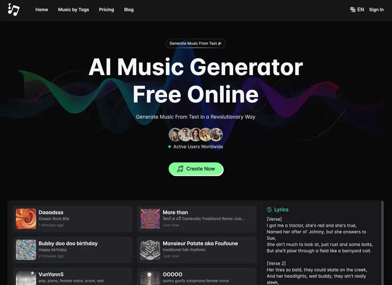 Powered by the Suno V3 API, AIMusic.so enables music enthusiasts, content creators, or anyone needing music to generate tracks using artificial intelligence—all without copyright concerns. Previously, most relied on free music and sound effect websites for materials, but these were limited by platform resources and licensing. Generating your own music avoids duplication and ensures perfect integration into any usage scenario.
