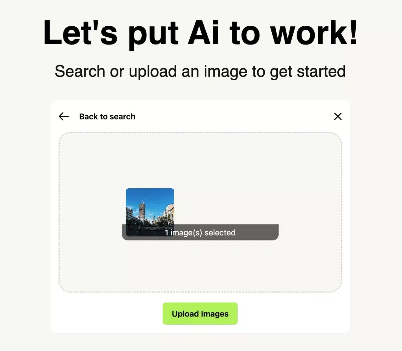Drag your source image into the upload area and click “Upload Images” to proceed.