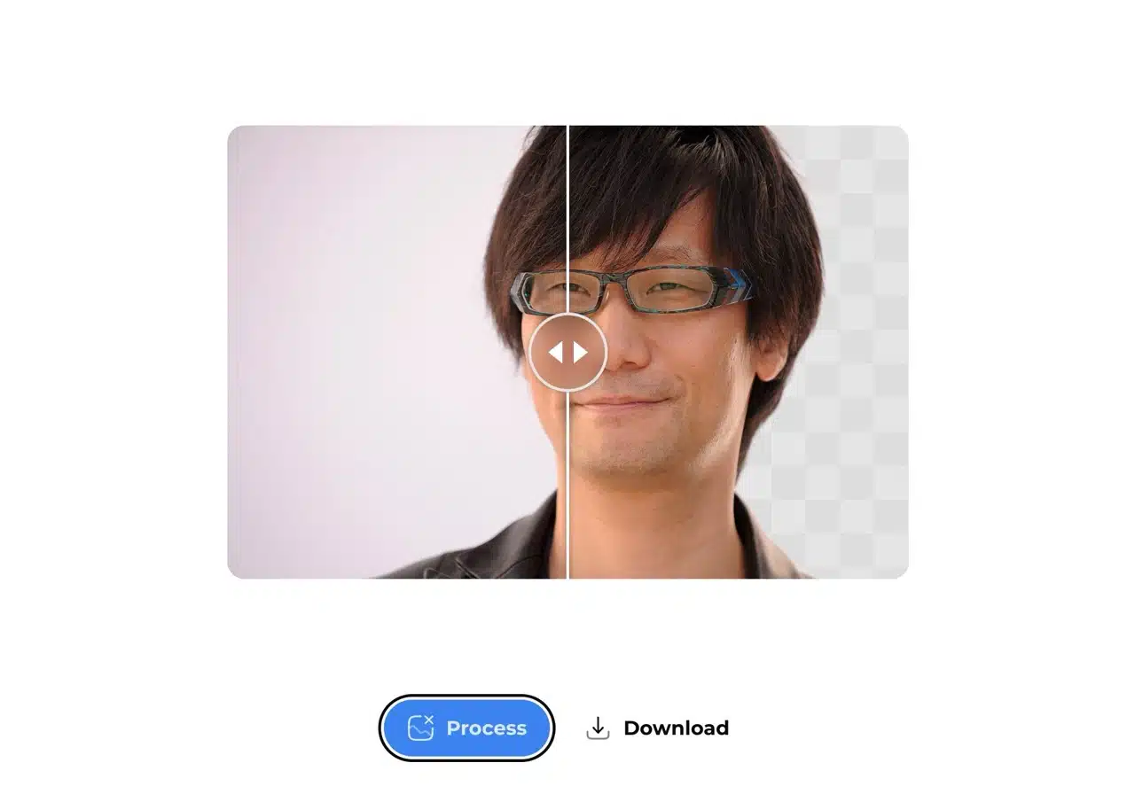 Once complete, an animation will show the image with its background removed. Use the slider in the middle of the website to compare the before and after versions of the image.